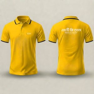 • সামনে প্রিন্ট – সাধারণত বুকের বা পাশে 2.5” থেকে 3.5” ইঞ্চি লোগো হয়ে থাকে, কিছু ক্ষেত্রে বড় সাইজের প্রিন্ট করলে (চার্জ প্রযোজ্য হতে পারে),